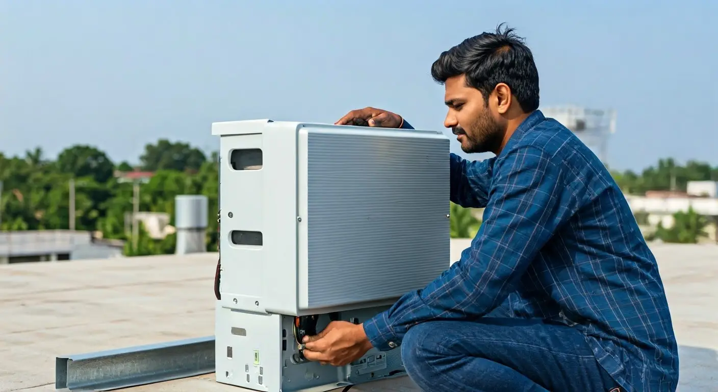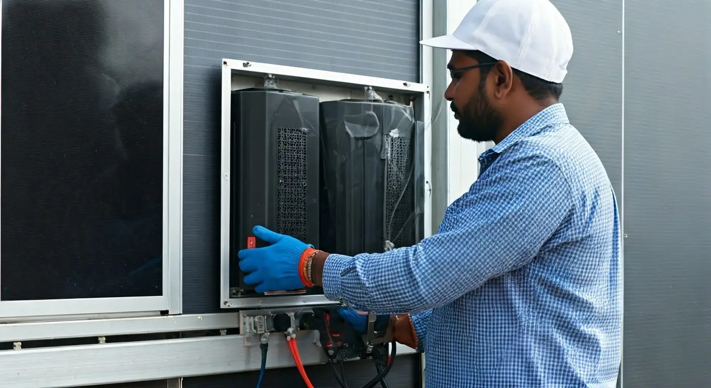 Professional solar system installation.